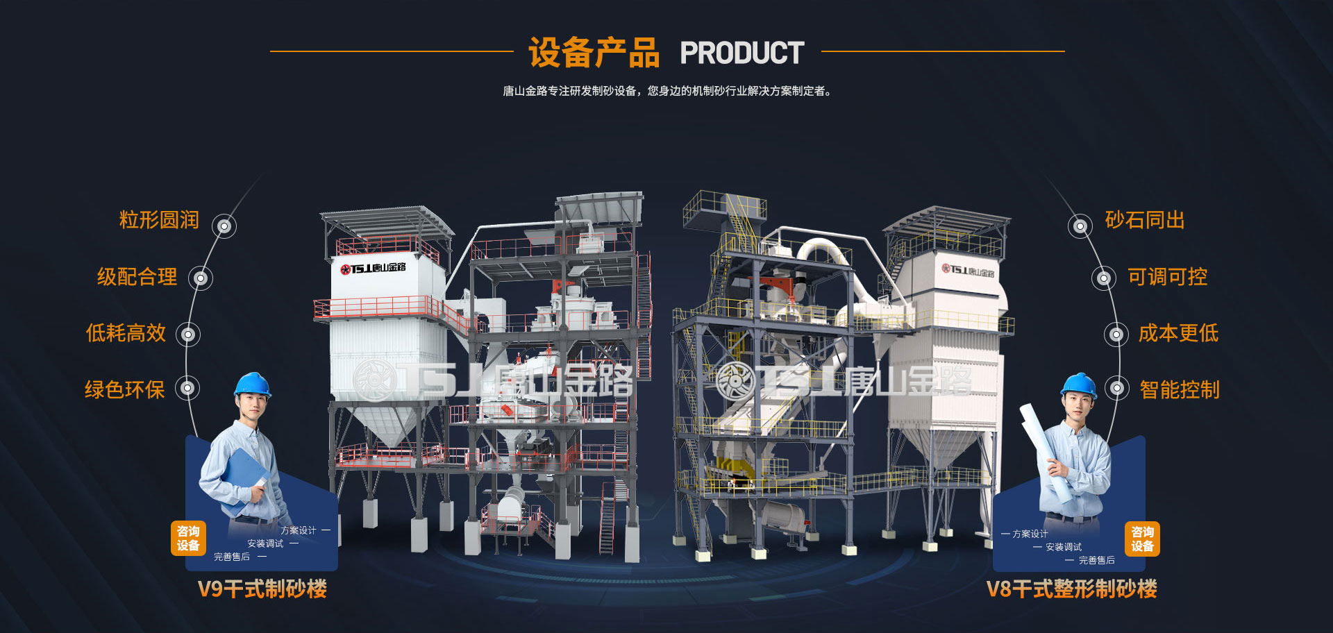 唐山金路制砂生產(chǎn)線(xiàn)配備有智能控制系統,可在線(xiàn)監測生產(chǎn)狀況、調節全套設備,保證成品砂級配連續可調、細度模數可調、石粉含量可控。